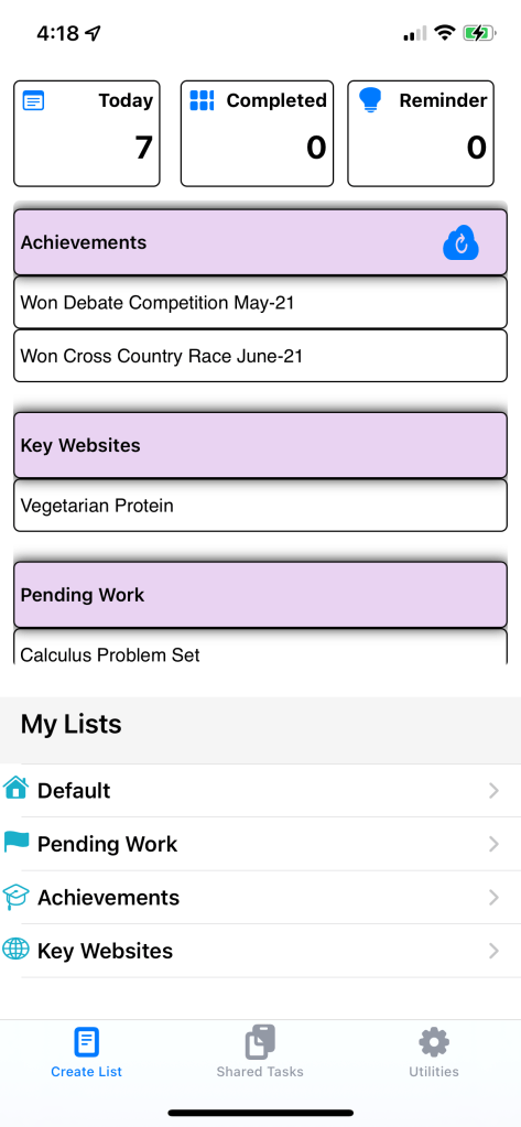 Track everything that is important for you. Organize tasks in lists, set Reminders, keep track of open and complete tasks, assign sub tasks to a Task, and set frequency (Daily, Weekly, Monthly, Always). Share your task/list with your friends and families and track tasks to closure within the shared group. Save URLs directly from other Apps. You can also use Siri to Add a list or task to the App.